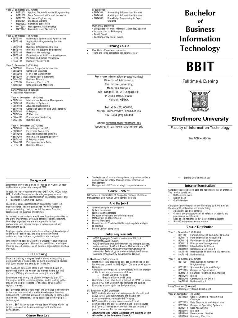 Strathmore Bachelor Of Business Information Technology Curriculum Pdf Information System Computer Science